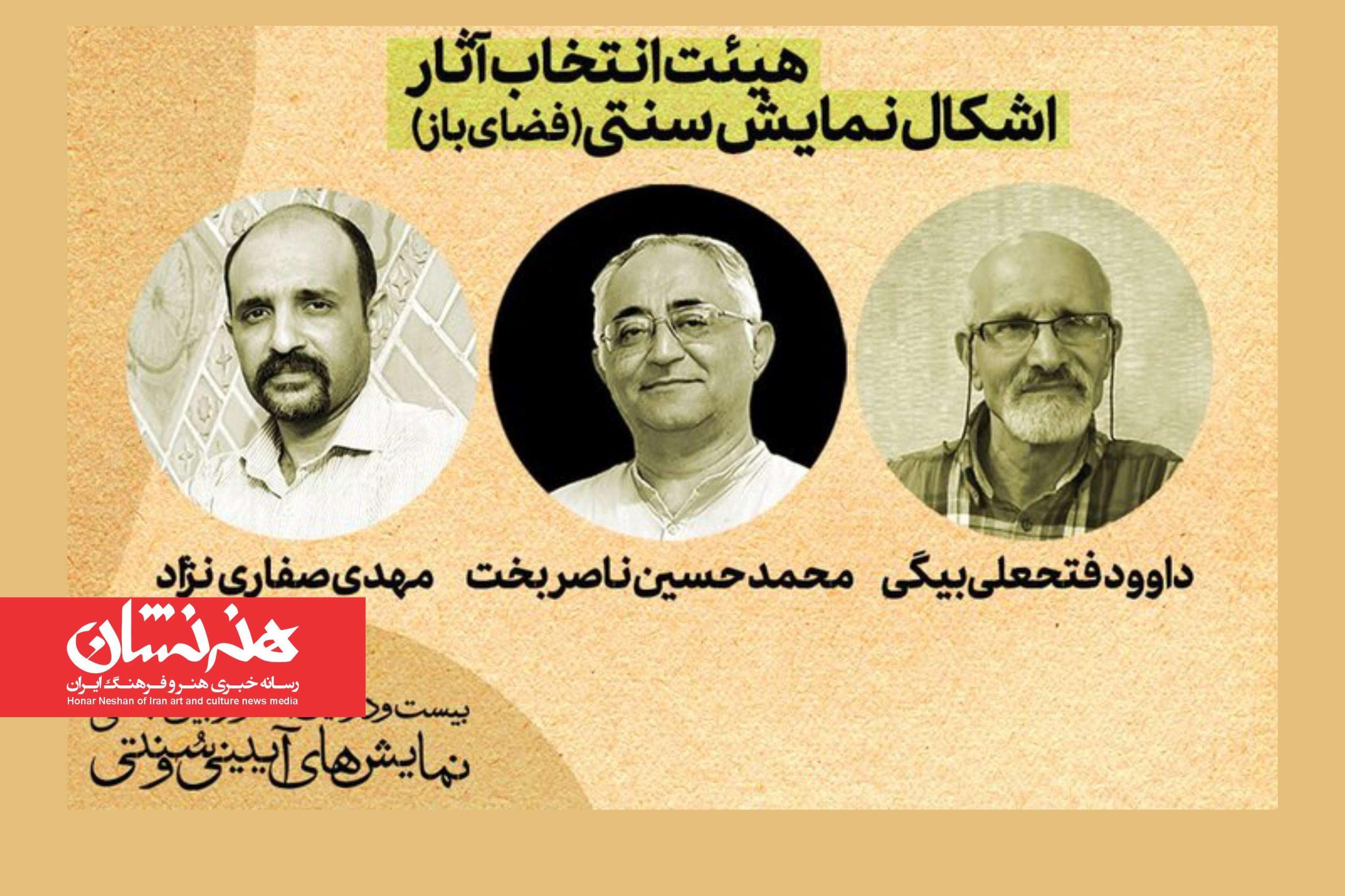 به گزارش هنرنشان به نقل از ستاد خبری بیست و دومین جشنواره بین المللی نمایش های آیینی و سنتی، داوود فتحعلی بیگی، محمدحسین ناصربخت و مهدی صفارینژاد که هیئت انتخاب بخش «اشکال نمایش سنتی (فضای باز)» بودند، آثار برگزیده خود را معرفی کردند.