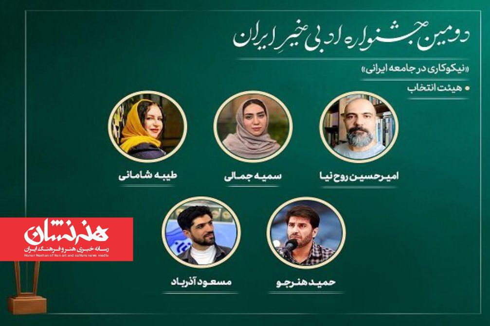 دبیرخانه دومین جشنواره ادبی «خیرِ ایران» با اعلام پایان مرحله انتخاب آثار متقاضی حضور در رقابت این رویداد، اعضای هیئت انتخاب این دوره را معرفی کرد.