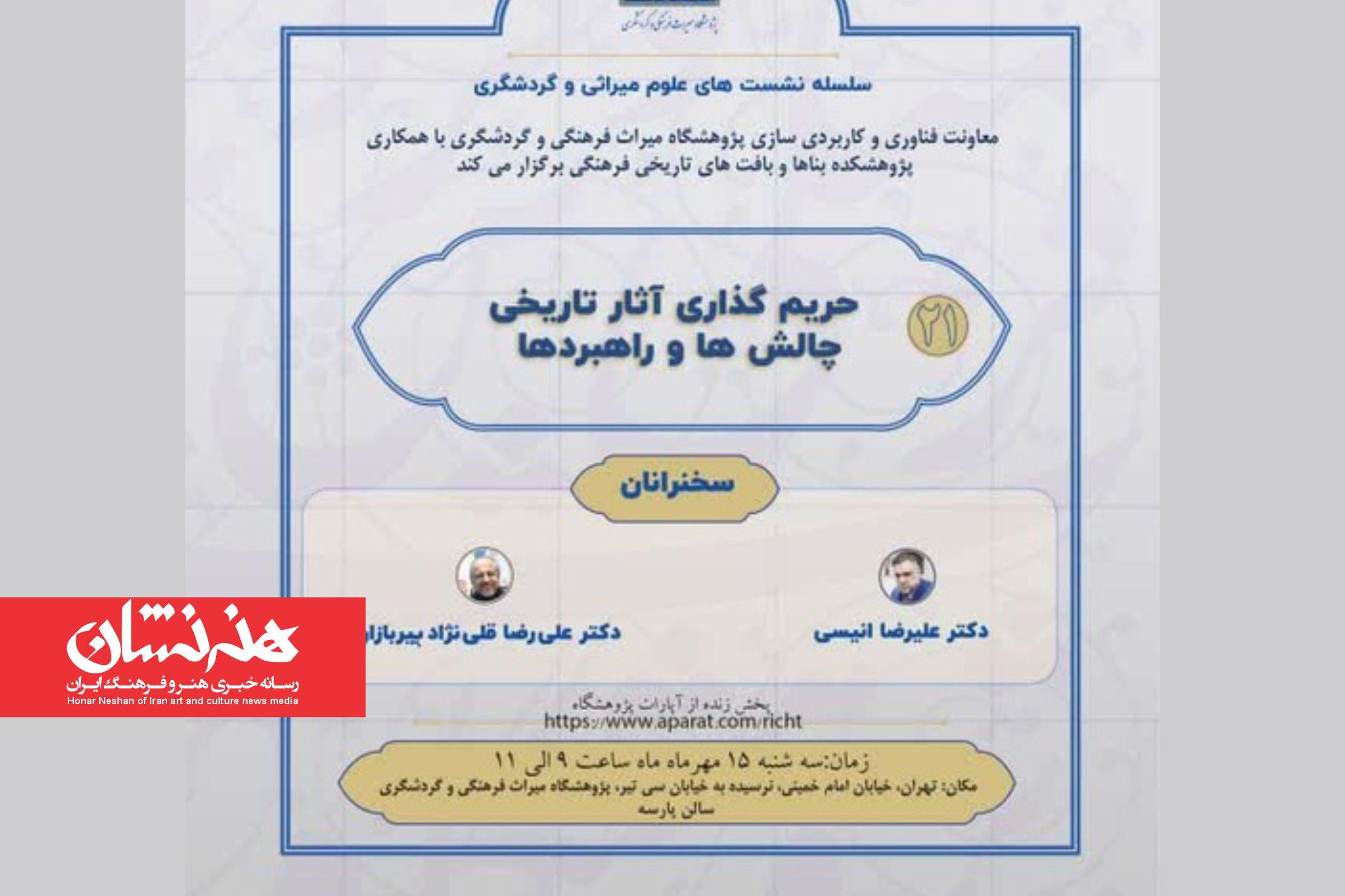 به گزارش هنرنشان، سلسله نشستهای علوم میراثی و گردشگری با موضوع «یادبود آثار تاریخی، چالشها و شاخصها» سه شنبه ۱۵ مهرماه ساعت ۹ تا ۱۱ برگزار میشود.