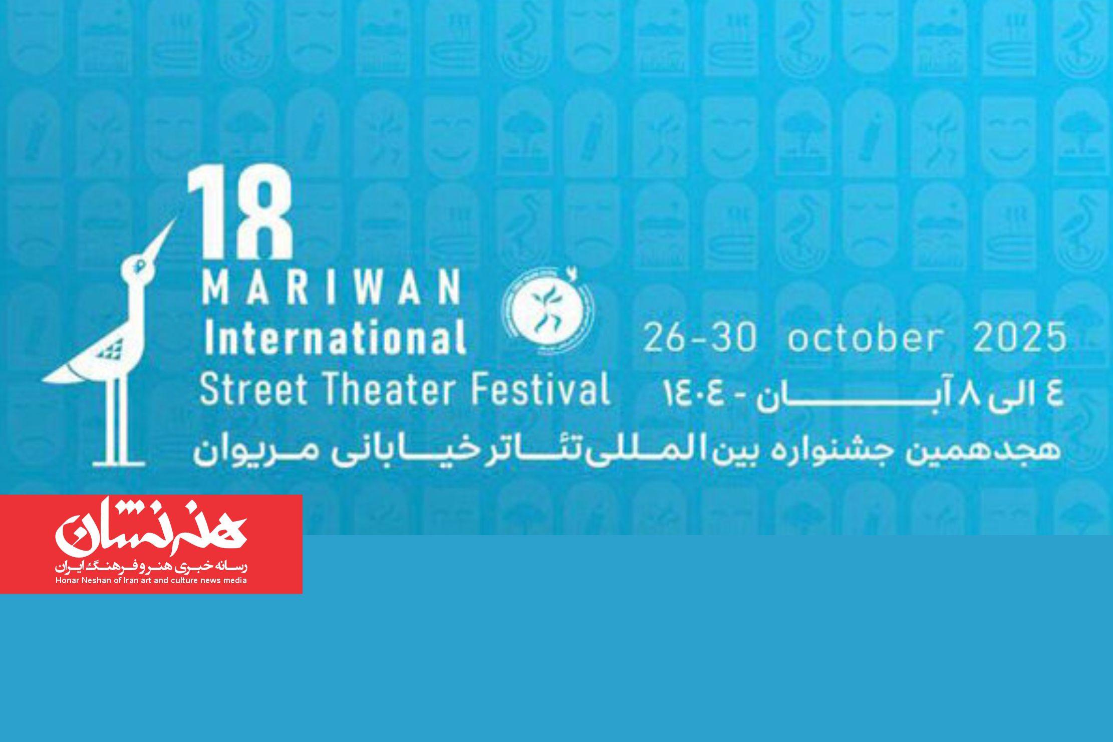 هجدهمین جشنواره بینالمللی تئاتر خیابانی مریوان با هدف گسترش تئاتر خیابانی، تبادل فرهنگی و تقویت جریان هنری مردمی به دلیری فاتح بادپروا، ۴ تا ۸ آبان در مریوان برگزار میشود.