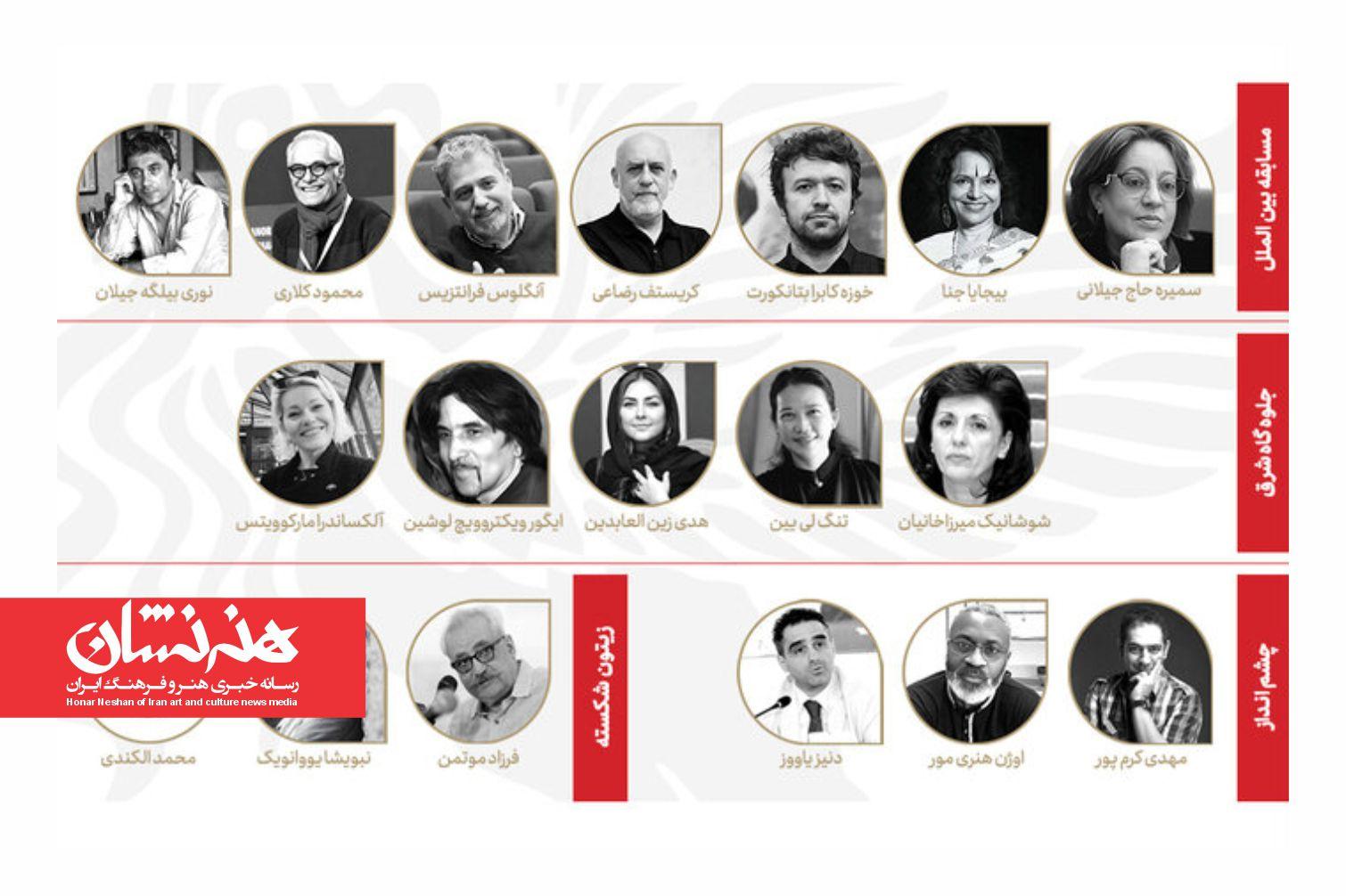 به گزارش هنرنشان به نقل از ستاد خبری جشنواره جهانی فیلم فجر، داوران بخشهای مختلف جشنواره جهانی فیلم فجر از کشورهای آسیایی، اروپایی و آفریقایی به ارزیابی فیلمهای حاضر در جشنواره مینشینند.