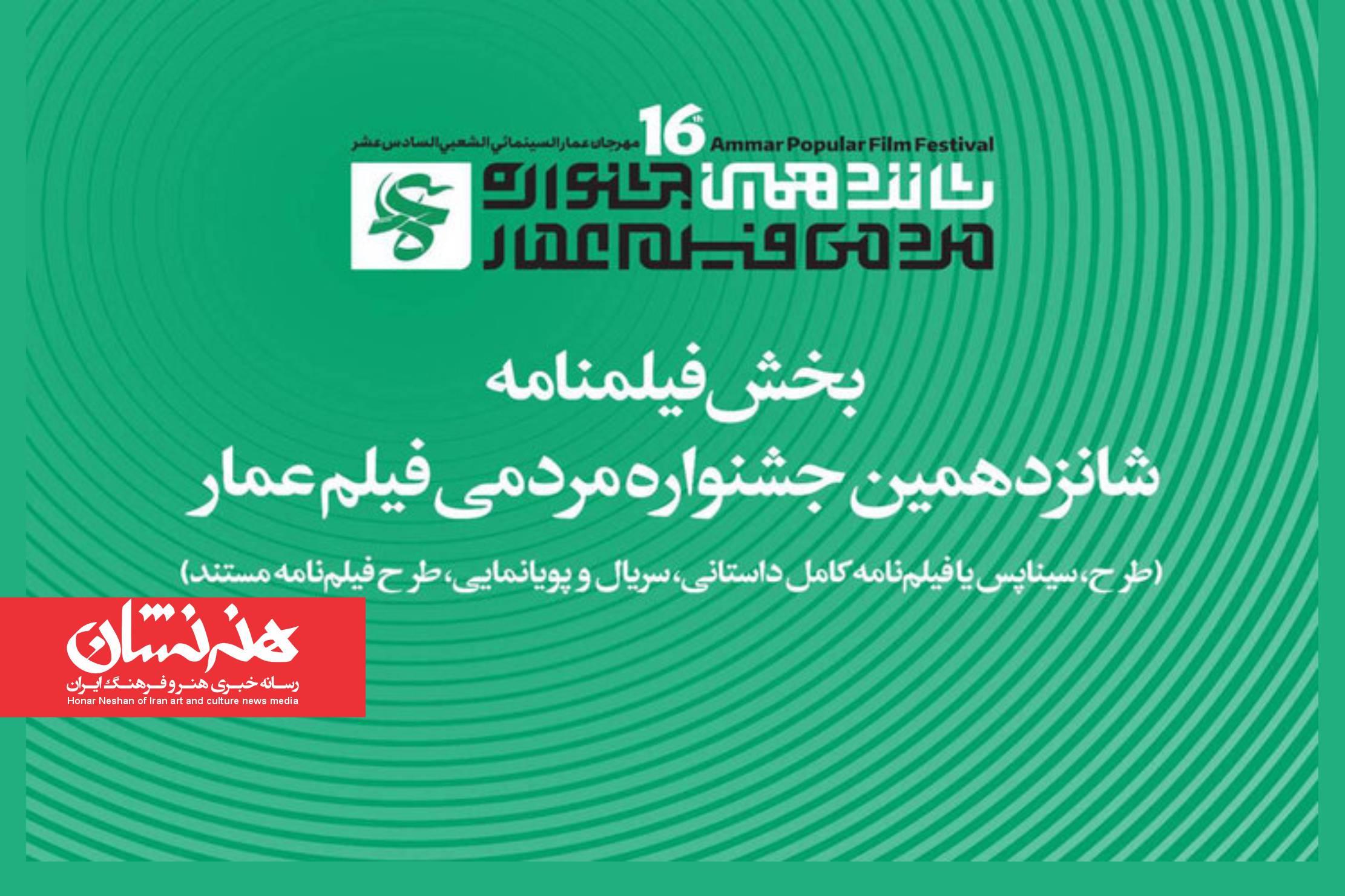 بخش فیلمنامه شانزدهمین جشنواره فیلم عمار در قالبهای مختلف پذیرای آثار شرکتکنندگان است.