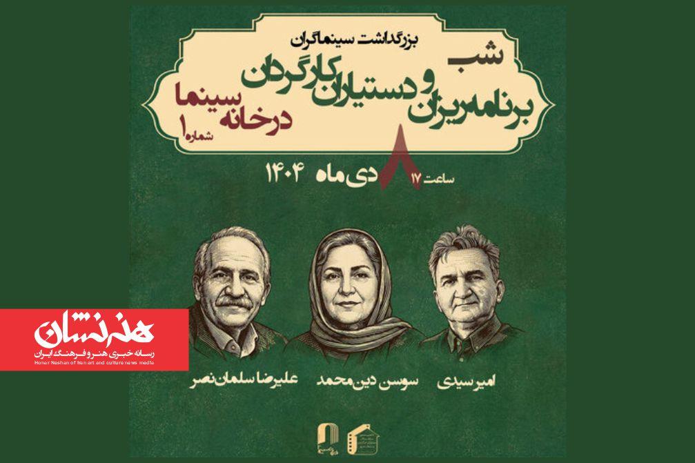 در این مراسم که با حضور سینماگران و هنرمندان از ساعت ۱۷ در سالن سیف الله داد خانه سینما برگزار میشود، امیر سیدی، علیرضا سلمان نصر و سوسن دین محمد مورد تجلیل قرار خواهند گرفت.