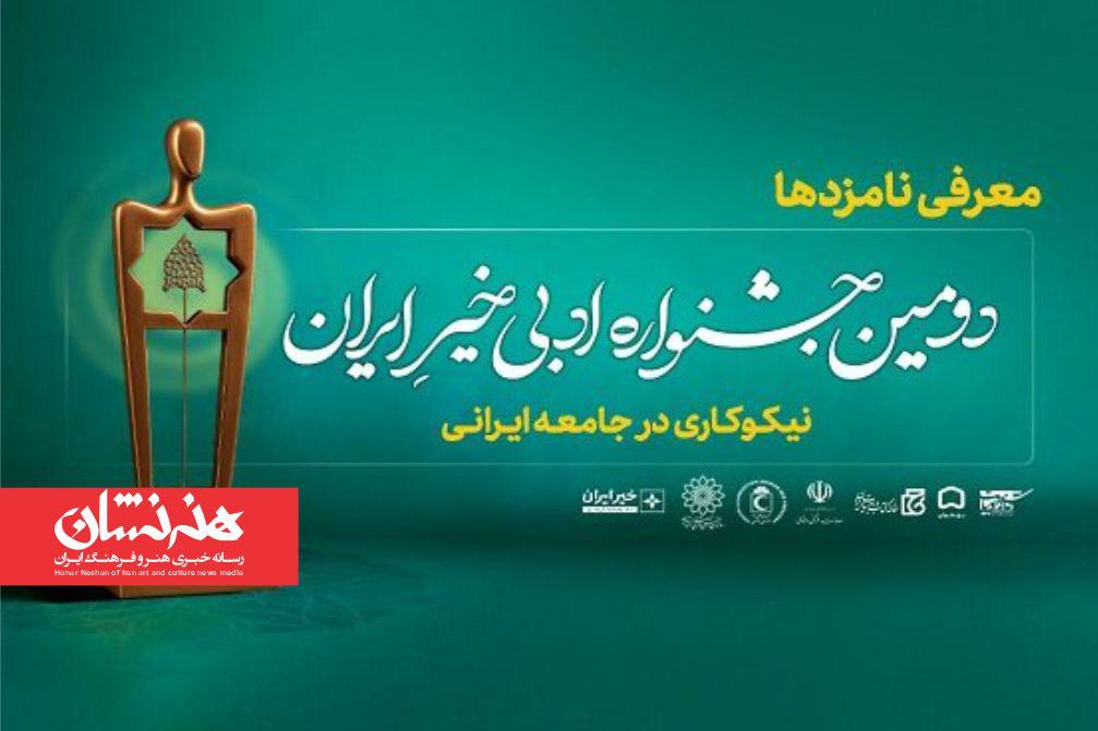 نامزدهای دومین جشنواره ادبی «خیر ایران» در بخش‌های هشت‌گانه شعر و داستان کودک و نوجوان، شعر و داستان بزرگسال، ترانه، خاطره و تجربه‌نگاری معرفی شدند.