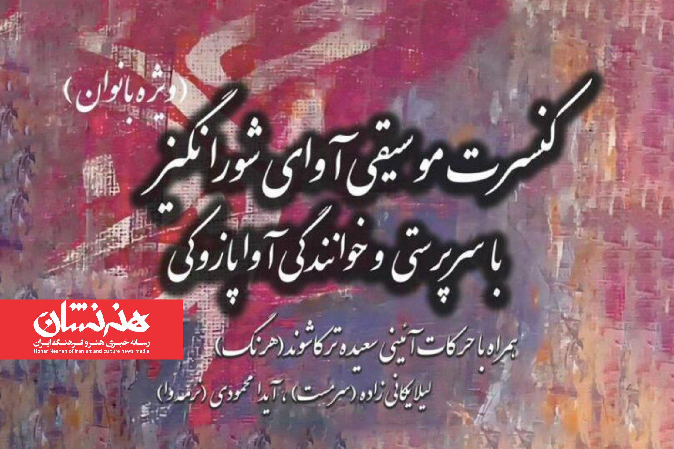 کنسرت «آوای شورانگیز» به سرپرستی آوا پازوکی، جمعه ۱۴ شهریور ویژه بانوان در تالار وحدت برگزار میشود.