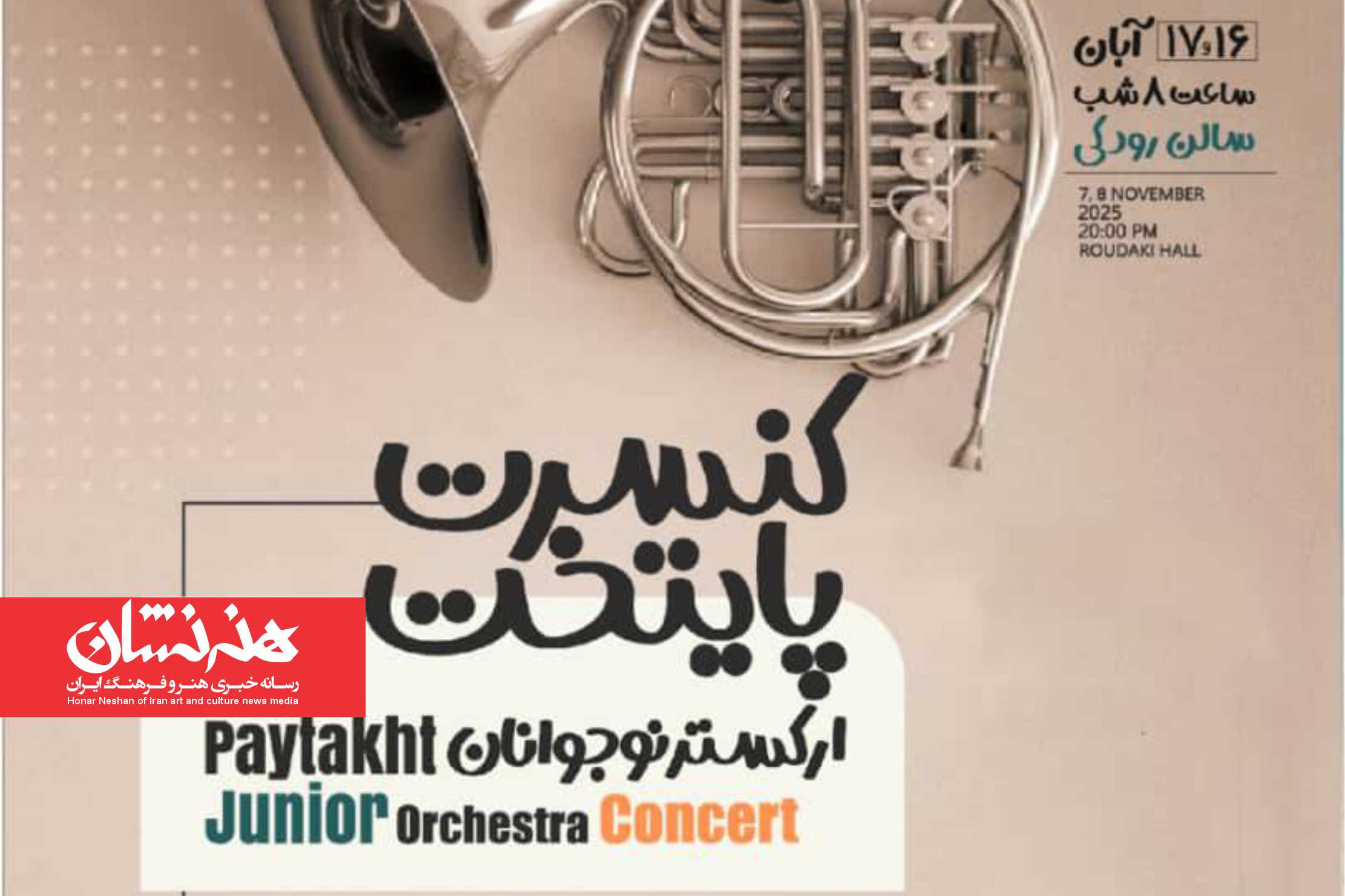 کنسرت ارکستر نوجوانان پایتخت با رهبری میهمان محمودرضا میرصیافی، ۱۶ و ۱۷ آبان در تالار رودکی برگزار میشود.