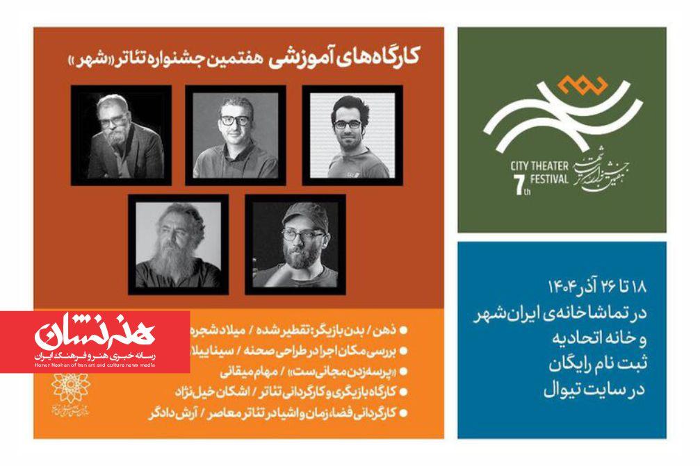 ۵ کارگاه آموزشی در هفتمین دوره جشنواره تئاتر «شهر» با حضور هنرمندانی چون میلاد شجره، سینا ییلاق‌بیگی، مهام میقانی، اشکان خیل‌نژاد و آرش دادگر برگزار می‌شود.